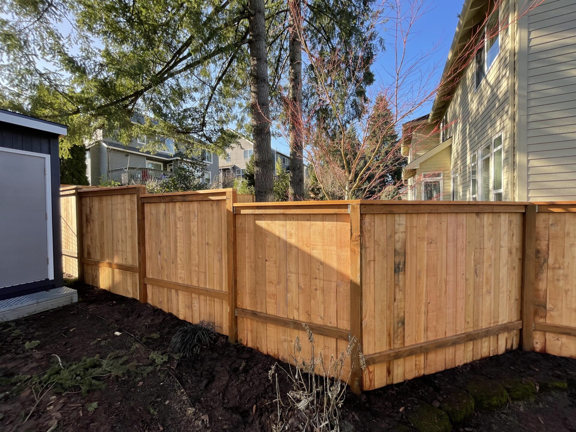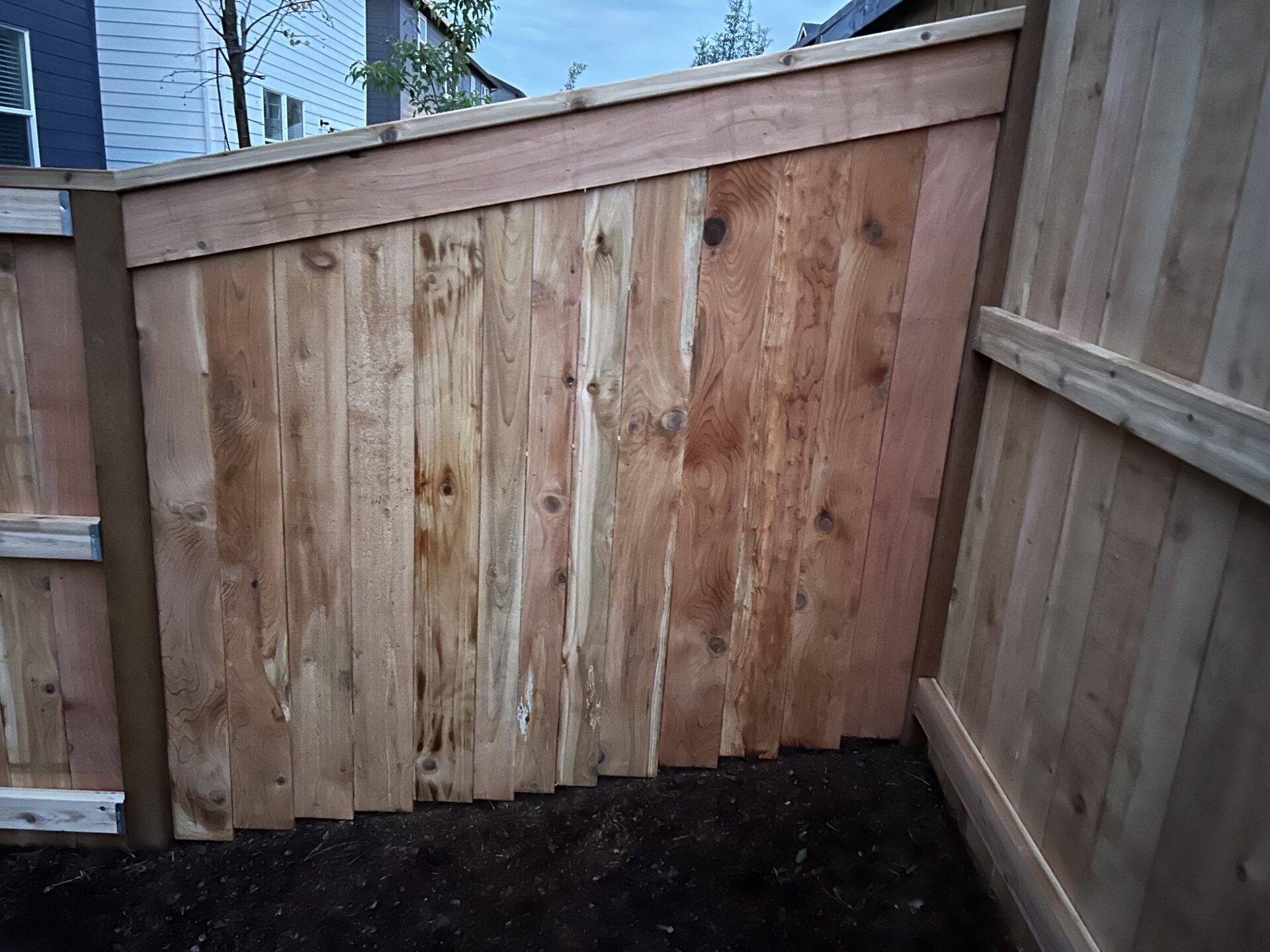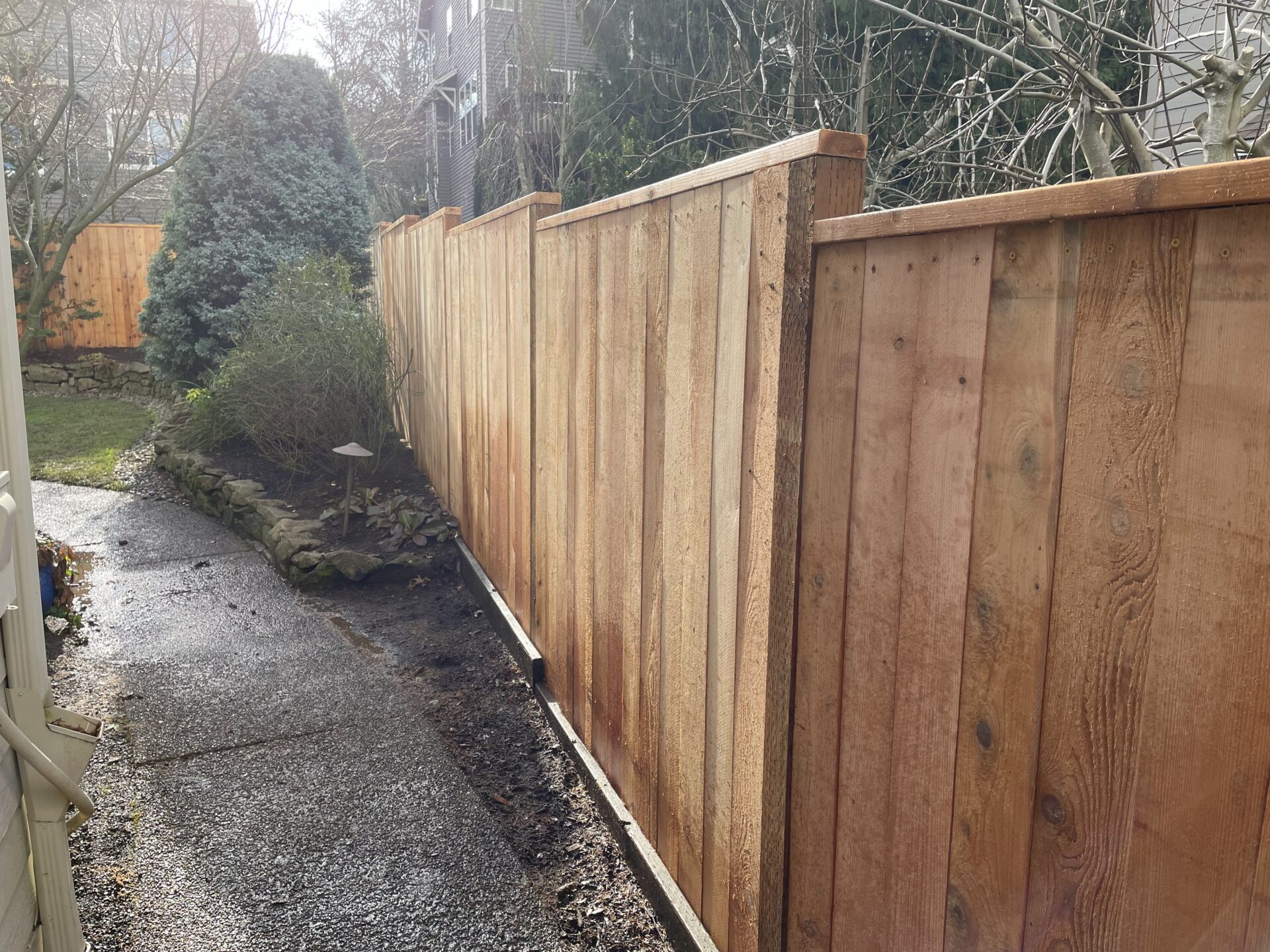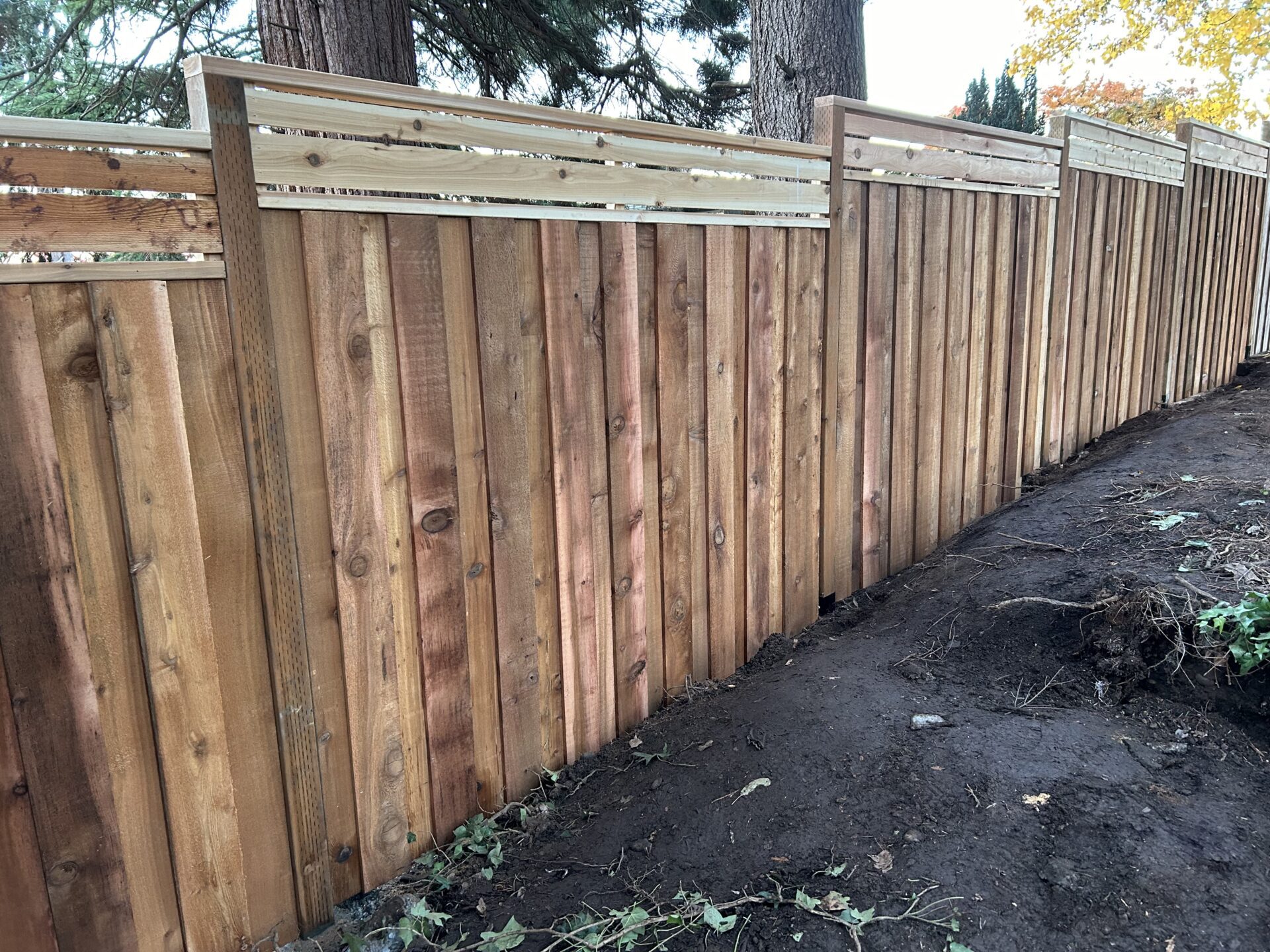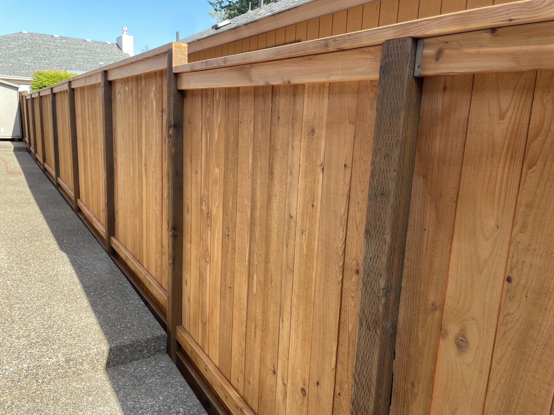 Classic and durable, our cedar vertical fences can be a simple privacy fence, good neighbor, batten style (overlapping pickets), or a picket fence. You can choose from cedar, pressure treated, or metal posts.